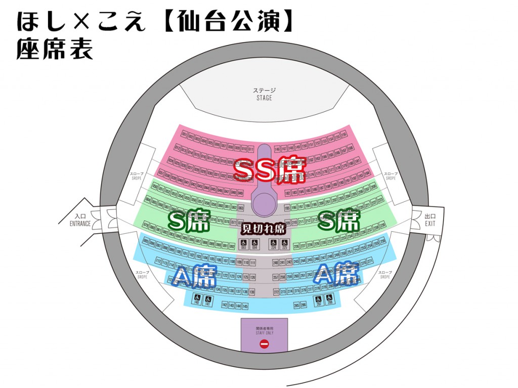 ※A席は全席見切れとなり、ステージの一部が見えづらい、または見えない座席となります。予めご了承ください。