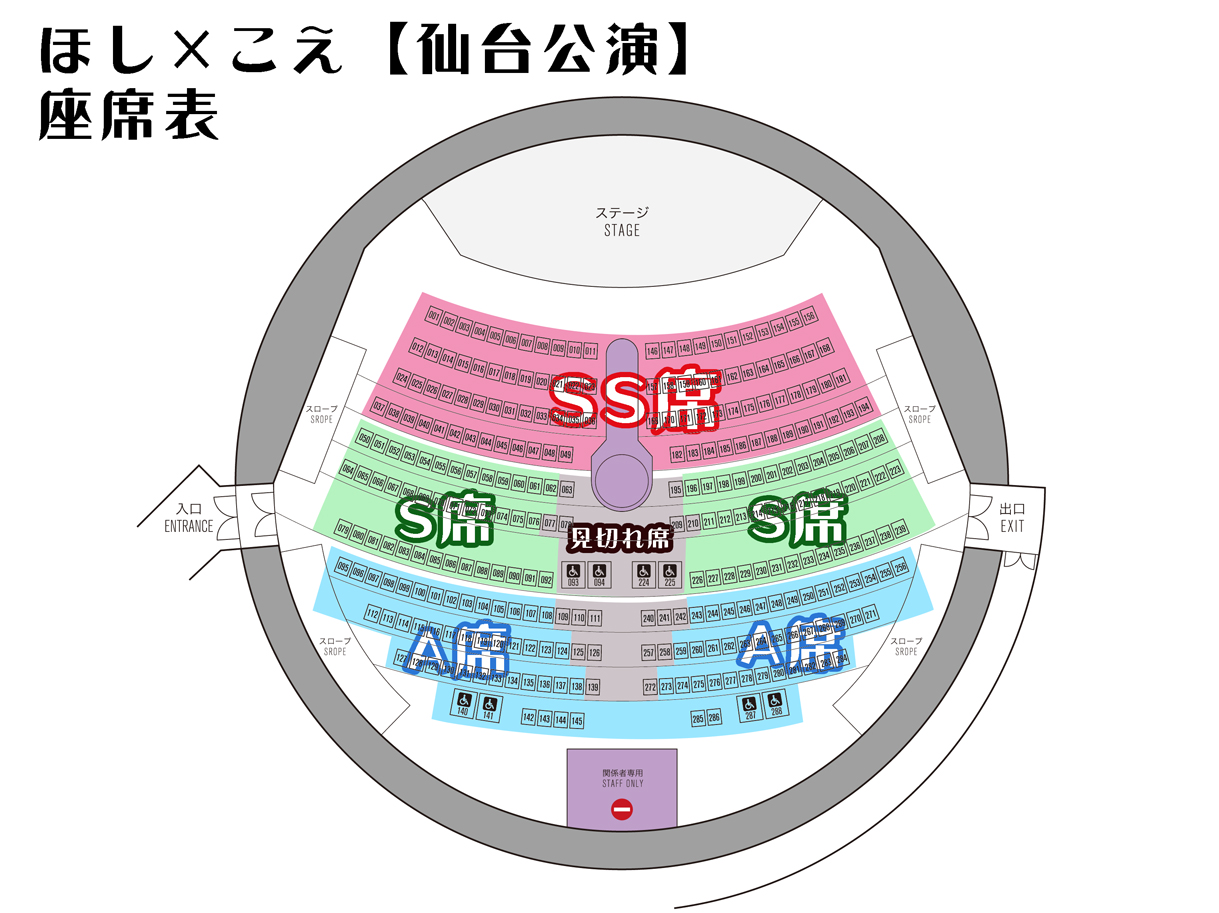 SS席 5,000円 S席 4,000円 A席(見切れ) 3,000円