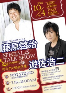 遊佐浩二さんと藤原啓治が出演します台湾でのイベント「SWEET×SWEET2」チケット販売開始いたしました。