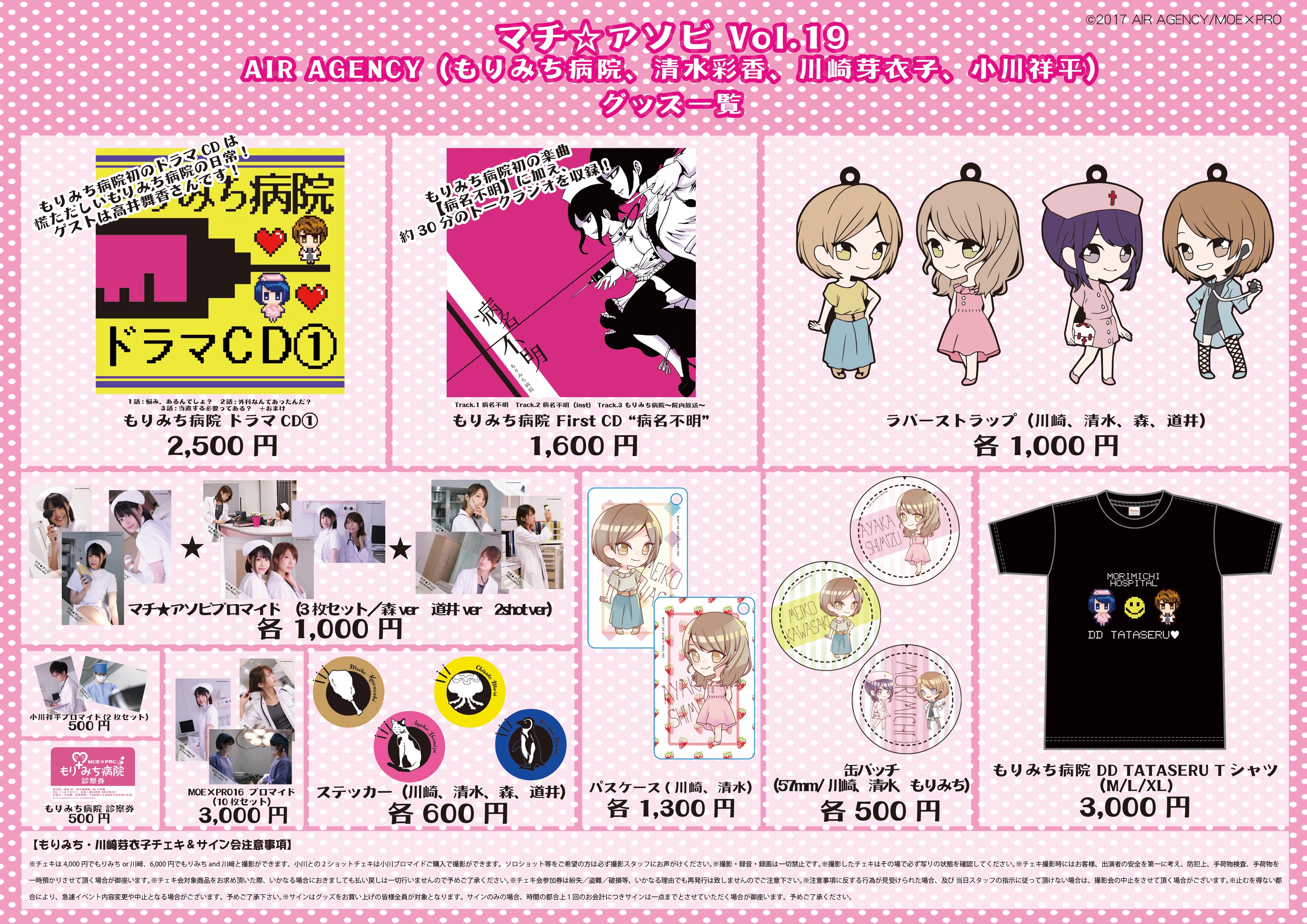 マチ★アソビVol.19で開催する森千早都・道井悠のイベント「もりみち病院」のゲストに 高井舞香さん(マウスプロモーション)、MCとして小川祥平が出演いたします。