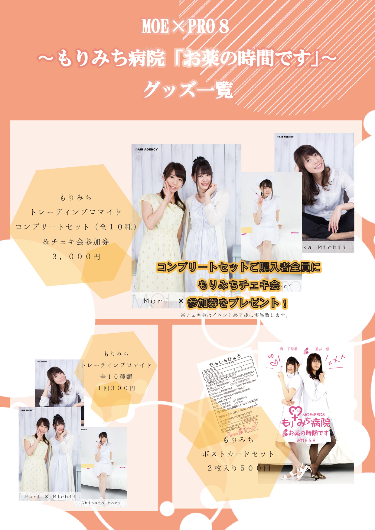 当日、お悩みが選ばれた方には起き上がる道井&猫ナース森のブロマイド&処方箋(もりみち直筆)をプレゼント!!