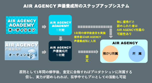 AIR AGENCY声優養成所が目指すのは、それらの活動の根幹を成す“芝居力”を持つ役者の育成です。